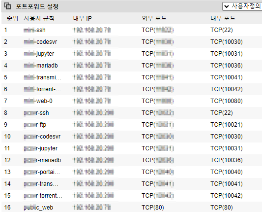 | myphpadmin | 8080 | mydomain.iptime.org:9080 |