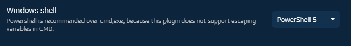 추가한 커맨드의 상세설정으로 이동하여 operation system & shell 탭으로 이동, windows shell 을 powershell5 혹은 powershell core 로 변경한다.